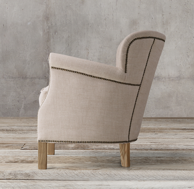 Small in stature, grand in style, the Professor's Chair provides all the presence and comfort of its larger kin. A 1920s English wing chair by design, its petite proportions and enveloping embrace offer seating on a more intimate scale. Upholstered with a down-feather fill and tailored with refined welting, our chair is at home everywhere a good book resides.