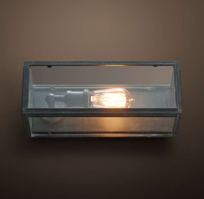 Our clear-paned fixture holds Edison-style filament bulbs, creating a showcase for the luminescent beauty of early electrical lighting.